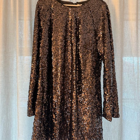 H&M festkjole i størrelse XL, laget av paljetter i rosa farge. Kjolen er designet for kvinner og egner seg til formelle anledninger.
