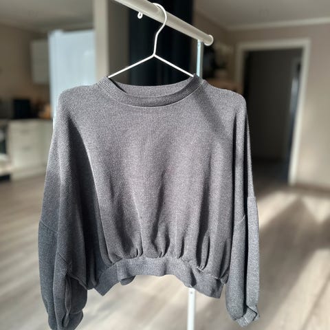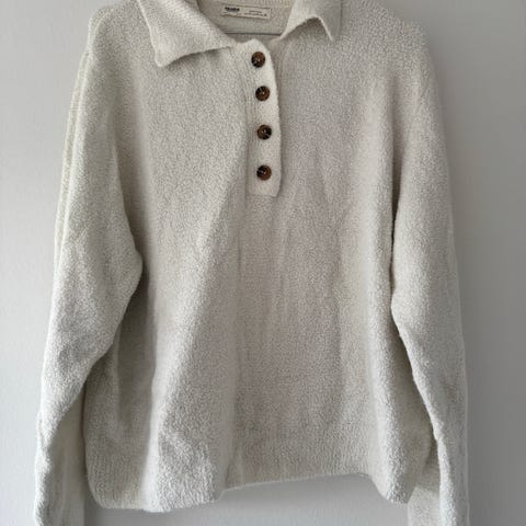 Pull&Bear genser i blå farge, størrelse M, laget av bomull. Genseren har et mønster med en isbjørn på fronten og har rund hals. Den er ganske tynn og noe kortere modell