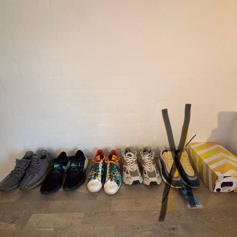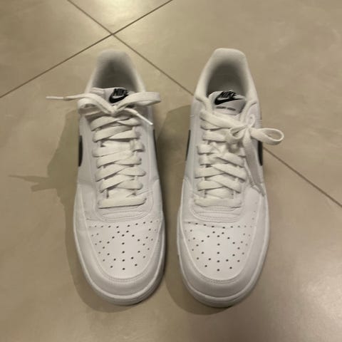 Nike XP-8 sneakers joggesko i størrelse 44. Skoene har en kombinasjon av svart, blå og beige farger. Designet for generell bruk med snøring og solid såle.