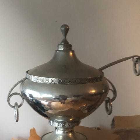 Dette er en antikk viktoriansk 1800-talls flott tinn samovar produsert av Shaw & Fisher laget av deres Sheffield pewter. Sheffield pewter var den absolutt beste kvaliteten man kunne få i England. og Shaw & Fisher var et eget velrenommert kvalitetsfirma. Denne samovren er et spesielt vakkert eksempel på firmaets nydelige produkter
