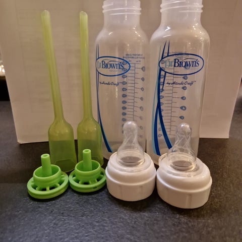 3x Dr. Browns flasker og noen skjeer