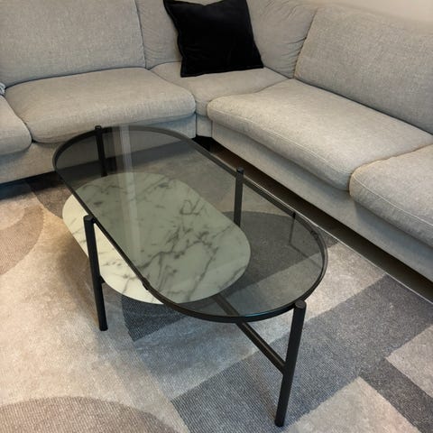 Flott svart bord fra Home&cottage selges uten anmerkninger. Matt marmorplate og svart stål understell. Tungt, solid og fint. 129 cm x 68 cm , 45 cm høyt. Kjøpt på salg for 4000,- usikker på hva bordet kostet opprinnelig. Selges kr 1000,-