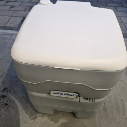Biltema Portabel Kjemisk Toalett med kapasitet på 20 liter septik. Egnet for bruk der fast toalett ikke er tilgjengelig, for eksempel camping eller båtturer.