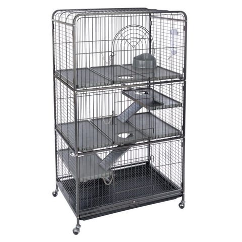 Bur, matskåler, vannflaske, snacks, høy og nesting dekke følger med. Har også reisebur