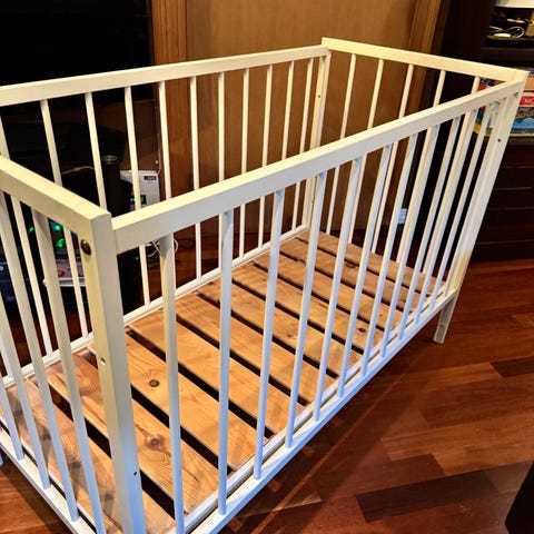 IKEA Sprinkelseng barneseng i hvit farge. Veldig pent brukt. Kun noen få bitemerker, ellers veldig fin! Madrass følger med. Veldig god. Har brukt tisselaken på den.