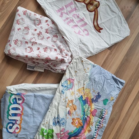 Bohus barneinteriør tekstiler med ulike dyremotiver. Settet inkluderer flere deler med forskjellige farger og mønstre, egnet for barn.