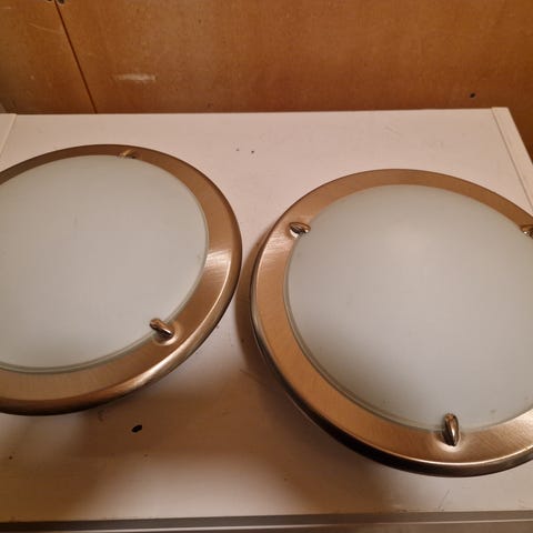 Har to stk. taklamper fra IKEA. Den ene mangler glasskuppel, men selges sammen som ett par.
