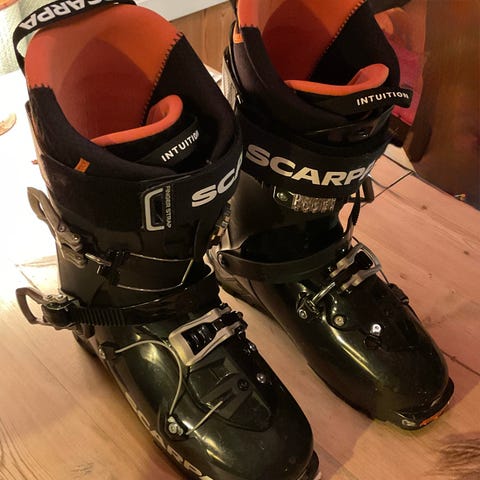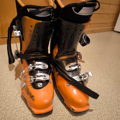 Gode gamle Scarpa Maestrale selges billig. Denne randonee-støvelen er god og ses overalt (tegn på at den er god!). Fungerer godt både oppover og nedover. Ikke den letteste, men heller ikke den tyngste - 120 i flex. Godt brukte toppturstøvler, men har veldig mange skidager igjen - alt funker fint. Str 25.5 (297mm).