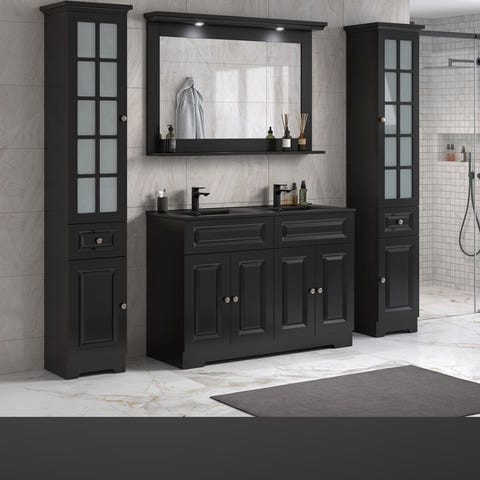 Baderomsinnredning med dobbel vask og granitt benkeplate