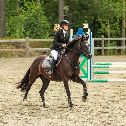 Pent brukt Kentucky showrug i navy. Har et lite hull på ryggen. Har ikke gjordstroppene. Str 125cm (brukt på kat 2 og 3). Er evt intr i å bytte det i et likt i str 115cm