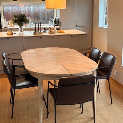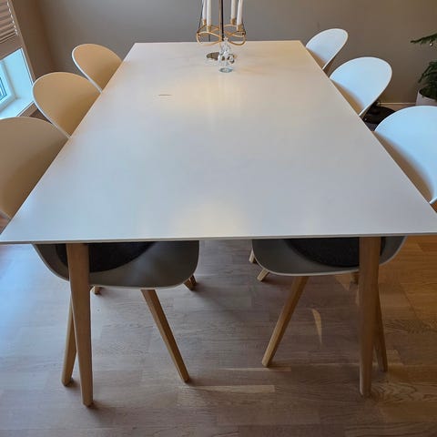 Selger pent brukt Yatch spisebord fra Bolia med 1 innleggsplate. Bordet er pent brukt, med 1 lite hakk/sår i bordkanten, (se bilde) samt 2 små sår i innleggsplaten.