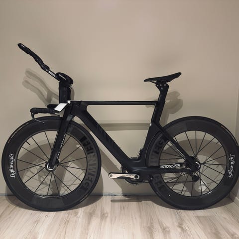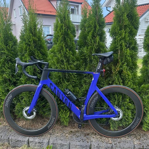 Canyon sin stive og aerodynamiske ramme kombinert med Shimano sine elektriske Ultegra Di2 gir, og noen av de raskeste karbonhjulene på markedet, Enve SES 7.8, nypris på over 30.000kr gjør dette til den perfekte sykkel.