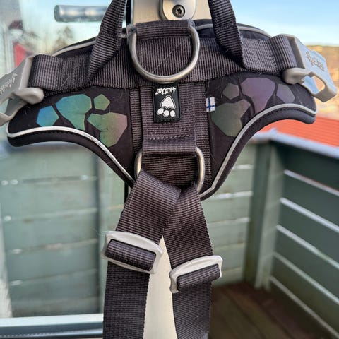 Denne ble tidligere brukt på vår golden retriever, men er nå for liten.