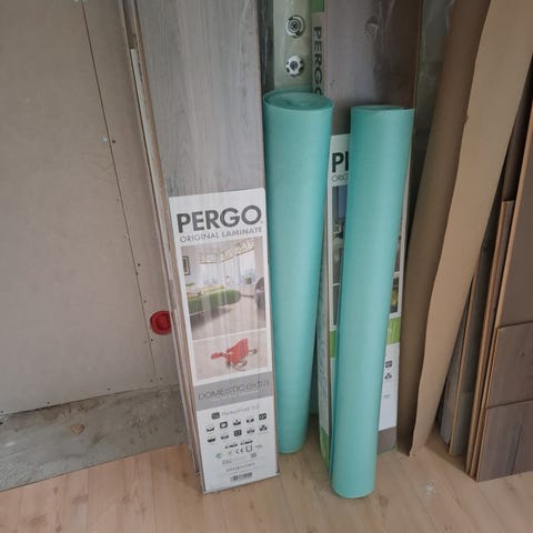 Pergo Modern Grey Oak laminatgulv i plankformat. Gulvet er demontert iforbindelse med renovering av bolig. Totalt ca 23 kvadratmeter gulv. Selges samlet og må hentes.