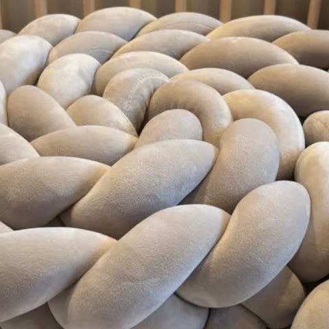 Doomoo ammepute med støtte i beige og hvit farge. Puten har en myk tekstur og er designet for komfort under amming.
