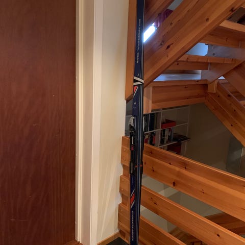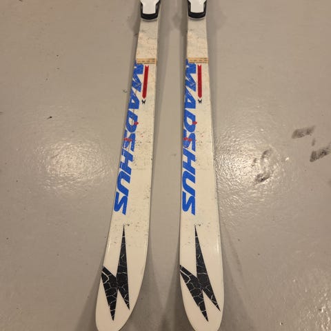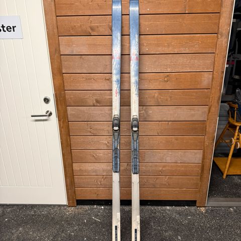 For turene med barna utenfor løypene. Røde ski NOK 650, 150 cm. Blå ski NOK 750, 160 cm. Skiene er godt brukt, bindinger er neste ikke brukt og koster 1100k nye, så vurderer nesten å skru dem av og sette dem på nye ski