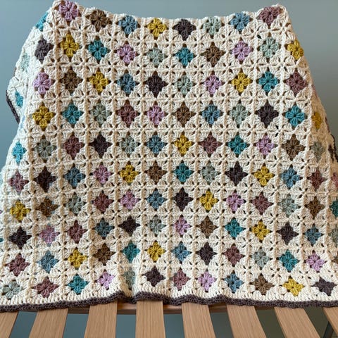 Hekleteppe i Drops Baby Merino. 100% ull. Lett og luftig garn. Perfekt til seng, barnevogn el.