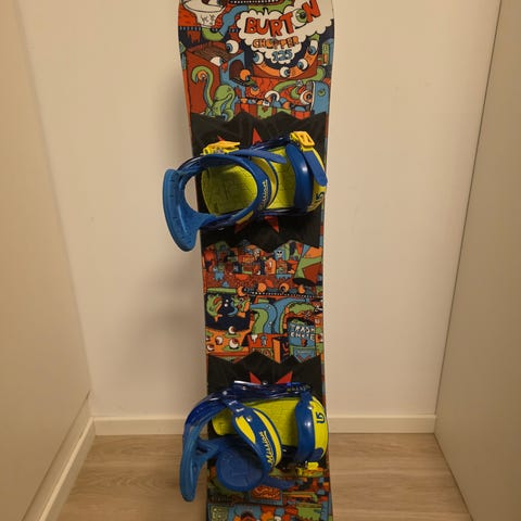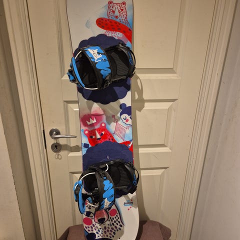 Pent brukt K2 Mini Turbo snowboard med bindinger.