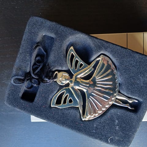 Forsølvet engelpike på sykkel. Ikke lenger i salg.