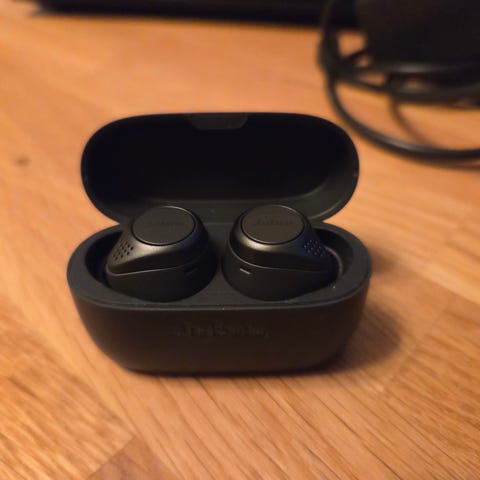Jabra Elite 85t trådløse hodetelefoner med avansert aktiv støyreduksjon (ANC) og justerbar passform. Utstyrt med 12 mm høyttalere for kraftig lyd og bass, seks mikrofoner med vindbeskyttelse, opptil 5,5 timers batteritid per lading, og hurtiglading med Qi-sertifisert trådløs ladeetui. Designet og utviklet i København.