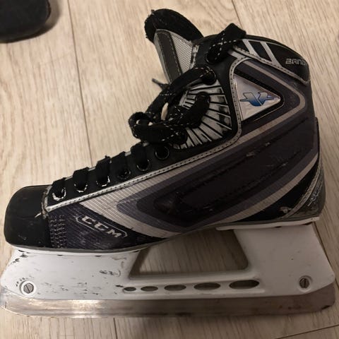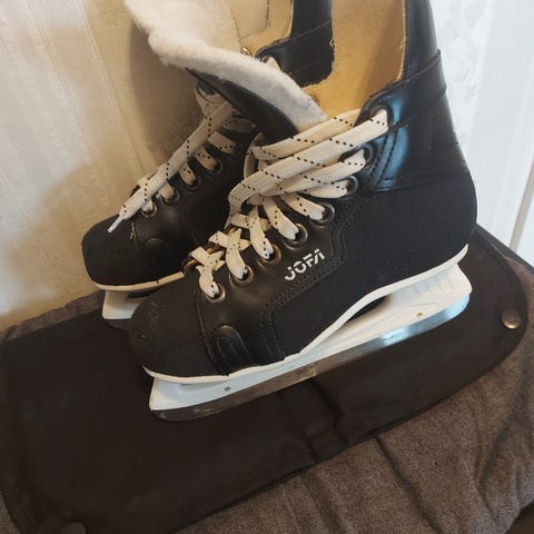 Bandyskøyter med hockeyjern i størrelse 34. Godt brukte skøyter, som fungerer helt fint,