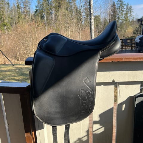Passier Grand Gilbert dressursal selges. Sete: 17, bom: 30. Salen er pent brukt og godt vedlikeholdt, med lite slitasje, alle reimer er lite slitt og i god stand. Selges da rytter og hest foretrekker sprang, og ikke lenger har bruk for dressursal.