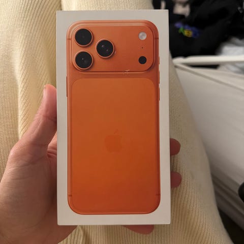Helt ny iPhone 17 Pro Max 256 GB i fargen Cosmic Orange.