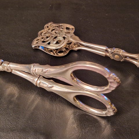 Klypen er laget i sølv 830 og har et detaljert design med blomster- og bladornamentikk på gripearmene og klør på gripende. Kan se ut som Oldemormønster? Passer til bruk ved servering av sukker eller små matvarer som oliven eller tapas.
