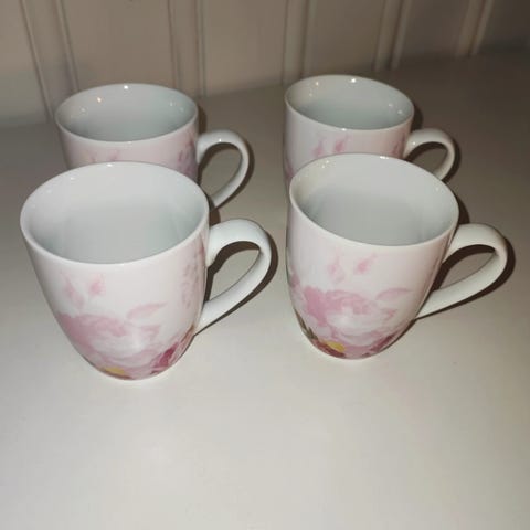 Seks krus/kopper med blomstermotiv