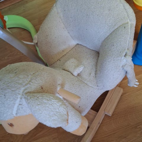 En flott gyngehest/gyngestol formet som en myk og god hval. Ca 62 cm høy.