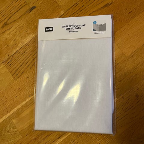 * 1 hvitt bomullslaken fra Troll som fulgte med madrassen (ikke stretch, men formsydd til 60x120)