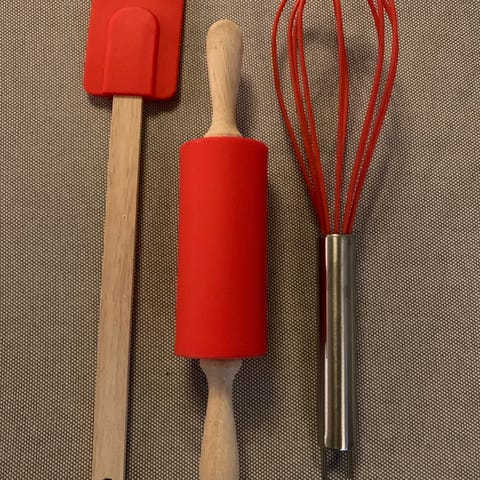 Bakesett, lekesett med forkle, hatt, kjevle og sleiv. Nytt/uåpnet