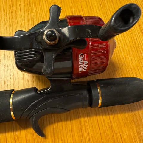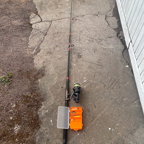 Shakespeare Spincast fiskestang med snelle. Fiskestangen er designet for enkel bruk med spincast snelle, egnet for fritidsfiske for barn.