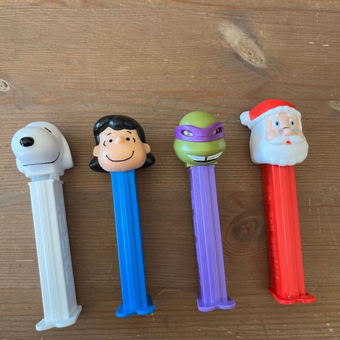 50stk - PEZ godteri dispenser samling med ulike figurer fra forskjellige serier og temaer. Inneholder mange forskjellige karakterer. Passer for samlere og som dekorasjon.