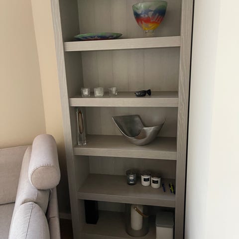 Ulik høydeforskjell mellom glassplatene da denne hyllen er håndlaget.