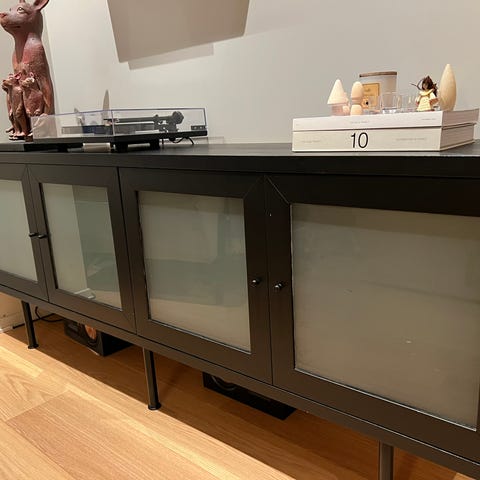 Fin tv-benk / hylle i metall og glass. Se bilder.