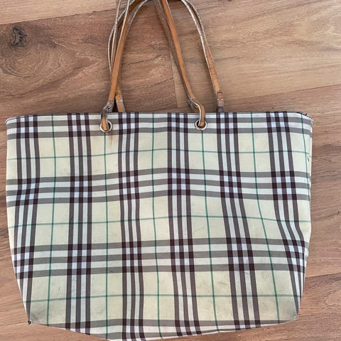 Den mangler zip clutchen inni og stroppene som strammer vesken, har nesten røket.