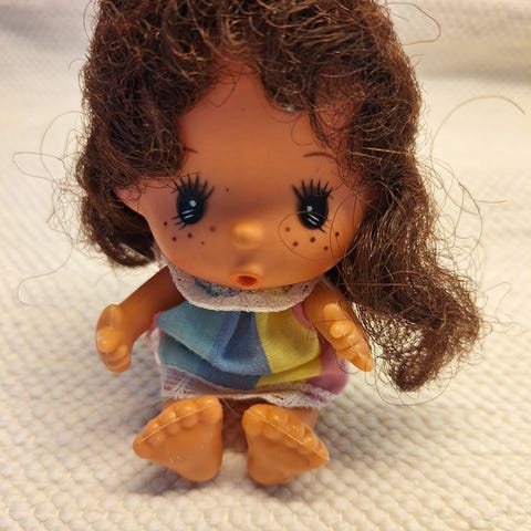 Blå matros. Kanskje Monchhichi. Høyden er 15 cm.