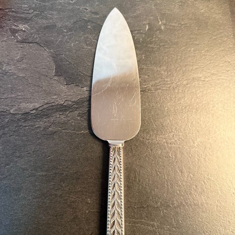 Tre spiseskjeer i sølv mønster Hardanger, designet Edvard Anda 1930. Overflaten på skaftet er «hamret», som om håndvarmer bestikk, med blomstermønster på toppen av skaftet. 830 sølv, ca 20 cm lange og skjeene veier 121 gr til sammen. Kan se ut som det er innrisset noens initialer bak på skaftet (OJ?). Egnet til servering eller som samlerobjekt. Selges samlet.