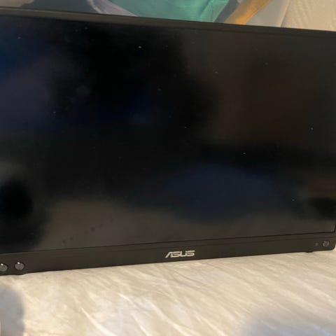 MSI 14-tommers skjerm med svart ramme og stativ. Skjermen er egnet som ekstern monitor for bærbare datamaskiner og andre enheter. Den har en kompakt størrelse som passer godt for arbeidsstasjoner med begrenset plass.