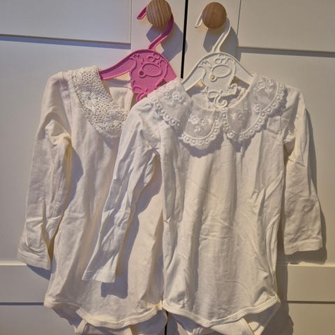 To bomullsbodyer fra HM str 98. Begge med knepping i skrittet. Prisen er for begge til sammen.