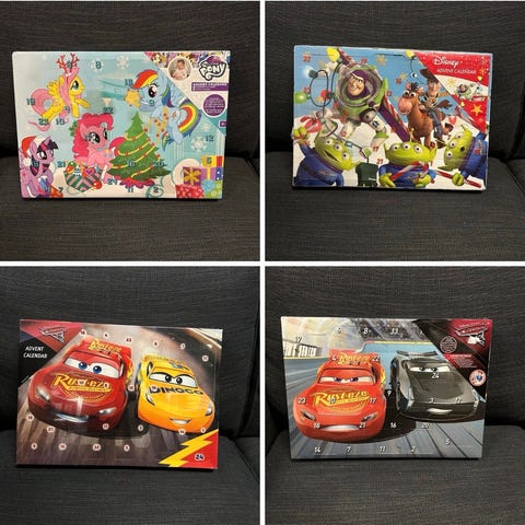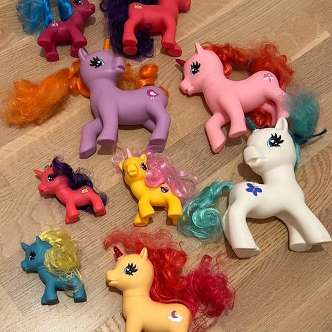 Pakke med masse enhjørninger. De to enhjørningene til høyre er elektriske og går fremover. Trenger nok nye batterier.