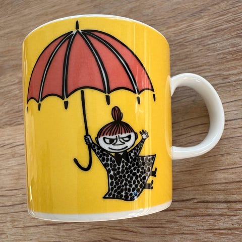 Kronemerket Lille My gul med bruksmerker fra gnisninger mot andre kopper i skap. Selges derfor rimelig☺️
