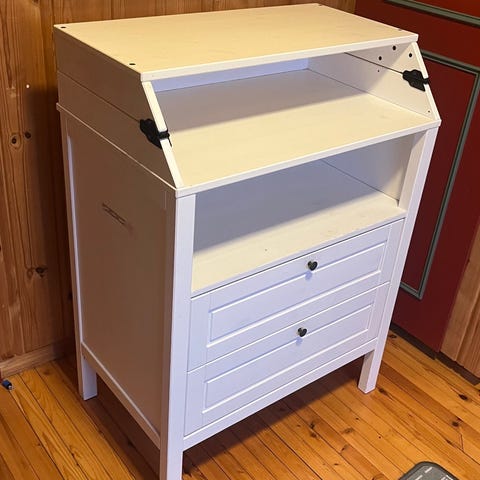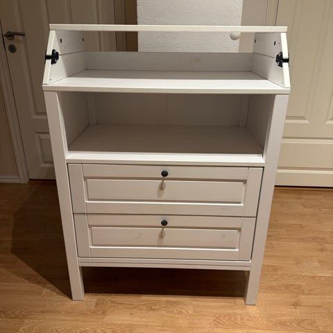Svart ikke hvit som på bilde, stellebord som kan pakkes opp,