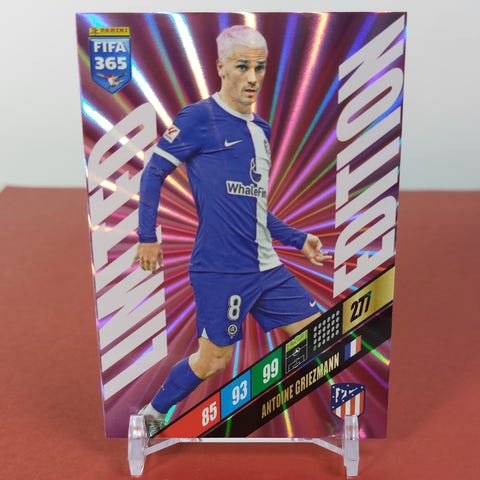 Panini FIFA 365 Adrenalyn XL samlekort med. Kortet viser i FC Barcelona-drakt, med detaljer som kortnummer 65, angrepsverdi 96 og forsvarsverdi 23.