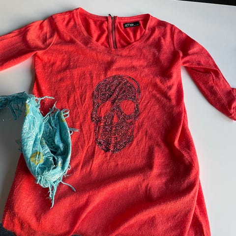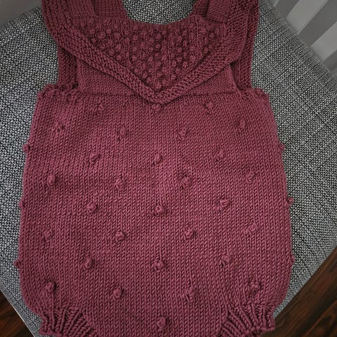Nydelig hjemmestrikket romper som vi dessverre bare rakk å bruke 1 gang før den var vokst ut av.