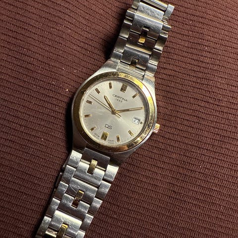 Okei Police-klokke selges. Noen merker i glass i rett lys. Trenger nytt batteri
