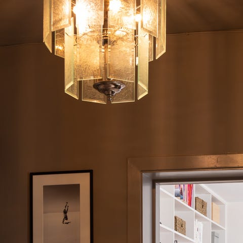 Vintage håndlaget taklampe i glass. Pene tre detaljer.
