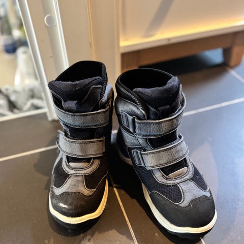 ECCO barnesko for gutt i størrelse 31. Brukt i en time utendørs - dette var dessverre en julegave som viste seg å være en størrelse for liten. Skoene er dermed helt nye, men litt synlig sand på etter en time utendørs. Ny pris 1199 kr, selges for 500 kr. Skoene er mørk blå/ svarte og har borrelåsfester.