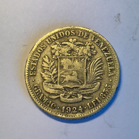 5 Bolívares sølvmynt fra Venezuela, utgitt i 1935.